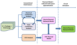 可以使用一些標準的數(shù)值技術來提取電路網絡模型,并且可以將相同的方法應用于通過流體流動的熱傳導和熱傳遞。通過數(shù)值提取復雜系統(tǒng)中的熱流和流體流動回路,可以大大減少仿真時間。強大的模擬器已經為復雜3D系統(tǒng)中的關鍵區(qū)域提供了從粗到粗的離散化調整,下一代求解器將采用網絡方法來解決這些類型的多物理場問題。