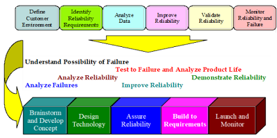 DfR的順序包含六個基本步驟,可幫助設(shè)計團隊制定可靠的產(chǎn)品開發(fā)路線圖。盡管DfR影響設(shè)計和開發(fā)過程的各個方面,但主要影響發(fā)生在概念和設(shè)計階段。專注于DfR設(shè)計團隊開始在概念階段的初期就考慮失敗的可能性,并在尋找分析和提高可靠性的方法時保持這種關(guān)注。