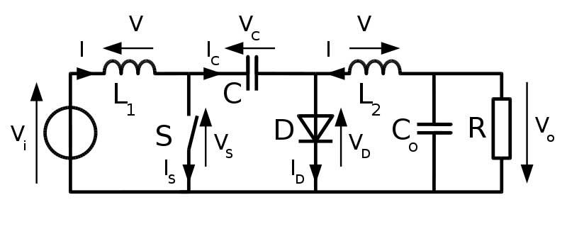 該轉(zhuǎn)換器由加州理工學院的Slobodan?uk教授設計,由兩個電感器,兩個電容器,一個二極管和一個開關元件構(gòu)成。它可以升高和降低施加到其輸入端子的電壓。?uk轉(zhuǎn)換器的輸出具有與輸入電壓相反的極性。它還能夠在不連續(xù)電壓模式下運行。這是在換向周期內(nèi)耦合電容器兩端的電壓降至零時的情況。附帶地,耦合電容器的存在降低了EMI輻射。